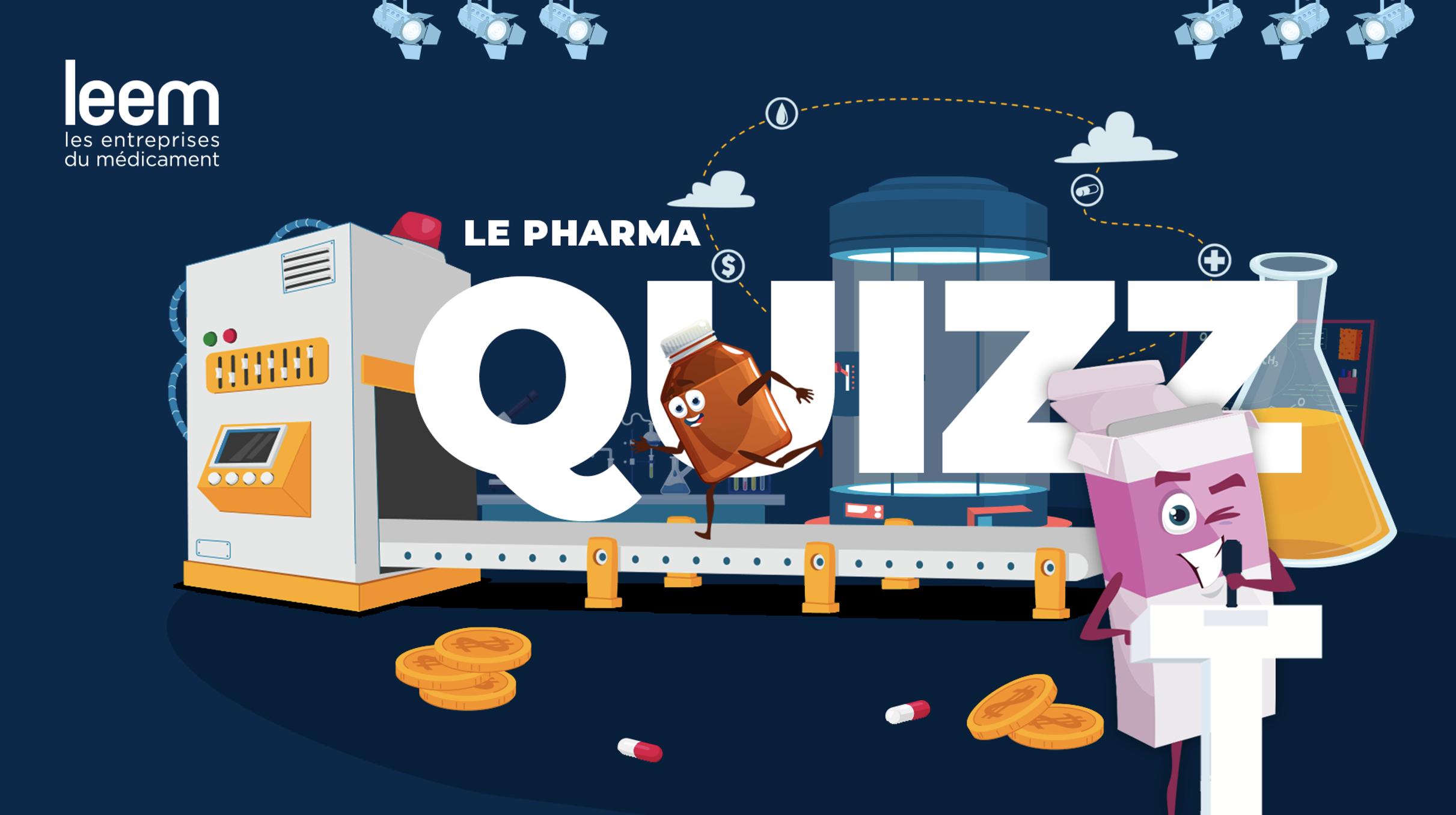 Quoi de mieux qu’un petit jeu pour tester ses connaissances, approfondir un sujet, rendre accessible une thématique complexe ? L’agence a travaillé à la réalisation du Pharma Quiz du service Emploi Formation du Leem dans le cadre de son Kit ambassadeur métiers. Initialement, le jeu devait s’adresser aux plus jeunes, collégiens et lycéens et devait être conçu comme un icebreaker. Nous avons alors opté pour un format malléable et évolutif grâce au choix du PPT animé donnant ainsi une grande liberté aux différents animateurs. L’objectif est simple, la première équipe qui arrive à 10 points a gagné ! Un jeu de rapidité pour se challenger sur le monde de la pharma, se questionner sur son avenir, ses choix, préparer son orientation professionnelle et pourquoi pas, s’ouvrir de nouveaux horizons et briser quelques idées reçues !